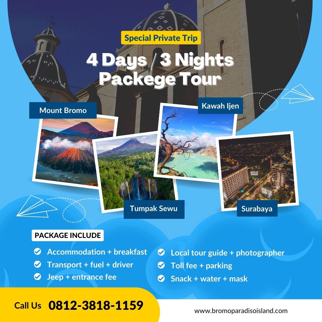 Bromoparadisoisland is a premier tour agent specializing in affordable and memorable travel experiences in East Java. With a dedication to providing exceptional service, we offer a variety of tour packages that cater to both private and family groups. Our offerings include breathtaking destinations such as Mount Bromo, Ijen Crater's Blue Fire, Tumpak Sewu Waterfall, and many more. Each tour is carefully crafted to ensure an unforgettable adventure, combining natural beauty with thrilling activities.